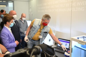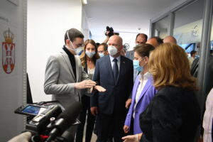 Tokom današnje posete na novoj opremi je demonstriran proces 3D skeniranja prilikom izrade ukrasnih obloga za potkolene proteze i izradu ovih elemenata na CNC mašinama, rad CNC mašina u funkciji razvoja prvog srpskog respiratora i Smartblot uređaja za automatizaciju biohemijske analize (startap SmartResearch) kao i prototipa za LifeMask, višekratne zaštitne maske i pametne rukavice za slepe (startap Anoris Technology). Prikazanaa je i demonstracija izrade zaštitnih stakala za vizire i filtera za višekratne zaštitne maske na laser mašinama (Polyhedra i Anoris), opreme za prošireno video iskustvo korisnika (startap Futuring), zatim opreme za električna merenja za razvoj radarske tehnologije (NovelIC) kao i demonstracija rada 3D štampača: modeliranje industrijskih gripera (Gimatic Balkan) i modeliranje hardvera za radarsku tehnologiju (NovelIc).
